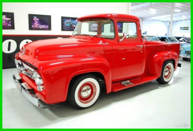 Welcome to StreetDreamTexas as we celebrate our 17th year in the classic and muscle car business. This outstanding Ford F-100 is in excellent condition throughout. It is and all steel show quality truck. The paint is an exsquisite modern base coat, clear coat, finished with terrific chrome, glass and trim. This truck was frame off restored a few years ago. They did not make any major modifications except bolting the tailgate shut after putting in a refinished wood bed. That is very understandable with this fabulous paint job. You would not want some scratches simply from the chains when you spent so much to make this truck look immaculate. They also updated the interior with high quality new leather on the bench seat, sculpted door panels, carpet, headliner, tilt column, custom sterering wheel, cruise control, AAM/FM/CD stereo, and kept cool by a Vintage AC. The chssis shows very well with painted hardware, gas shocks, power steering, power brakes, dual exhaust, turbo mufflers, a full size spare, and a stock chassis retaining the straight axel. Power comes from the GM 350 V8 crate motor with 290 Horsepower mated to an automatic overdrive transmission. The combination is a very reliable and runs fantastc. If you want a truly finished, ready to show, drive and enjoy pickup, you should consider this fine F-Series. Street Dreams is a full service dealership that can assist with worldide delivery, insurance, and financing options.