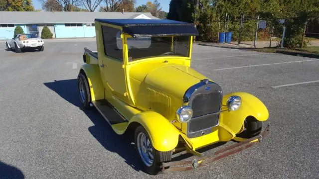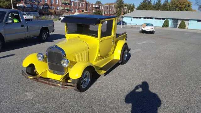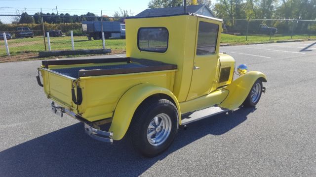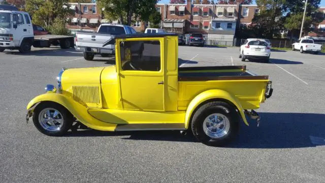 For sale is a 1929 Pickup, Truck has an older restoration but it is clean and will make a great driver. The frame was boxed during the resto and is in extremely good condition. The rear fenders are fiberglass, but the rest of the truck steel. Truck has a small block Chevy with a 350-Turbo trans and 8'' rear behind the the motor. It has a great sounding dual side exhaust that dumps out in front of the rear tires on both sides. In the front is a 3 core radiator to keep the motor cool. The charging system uses a single wire alternator to keep it simple. The front brakes have been converted to disk and the 8'' rear still has the standard drums on the back.The bad; truck has some surface rust only on the inner edge of the running boards as shown in pics, the bumpers could be re-chromed, and the rear window is only plexiglass.