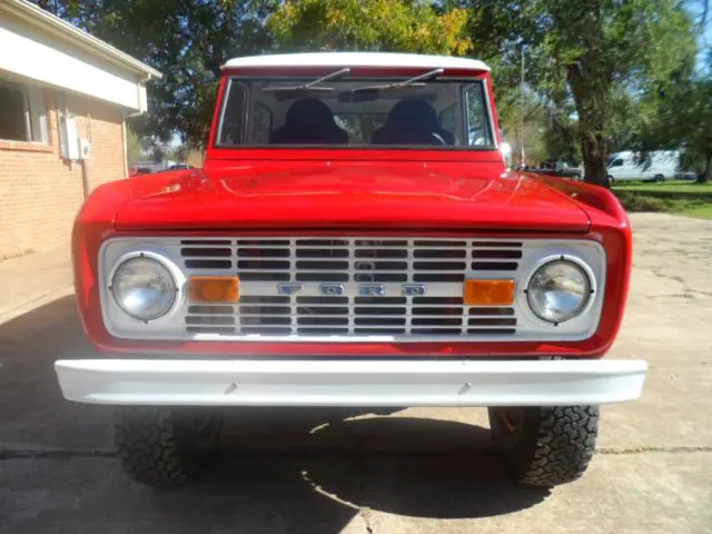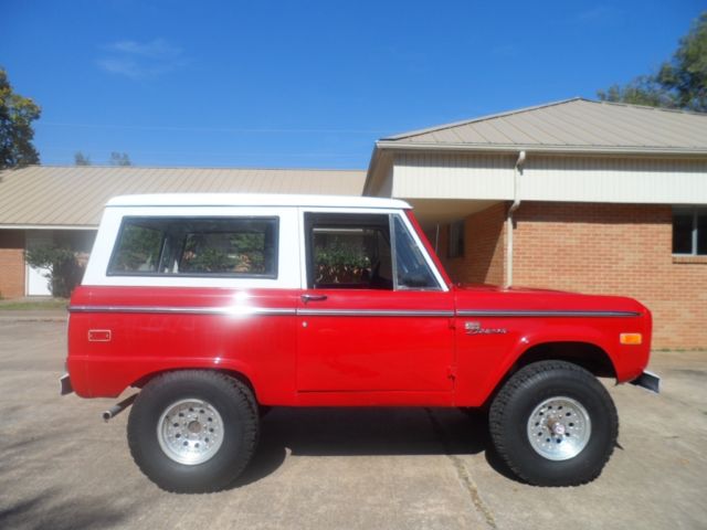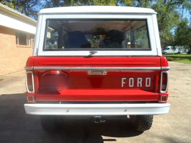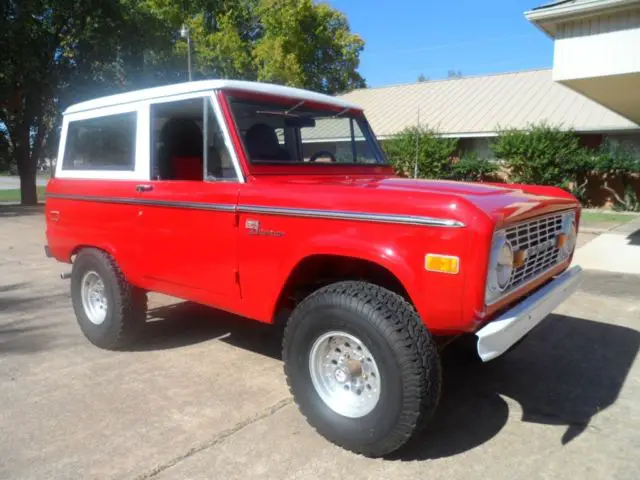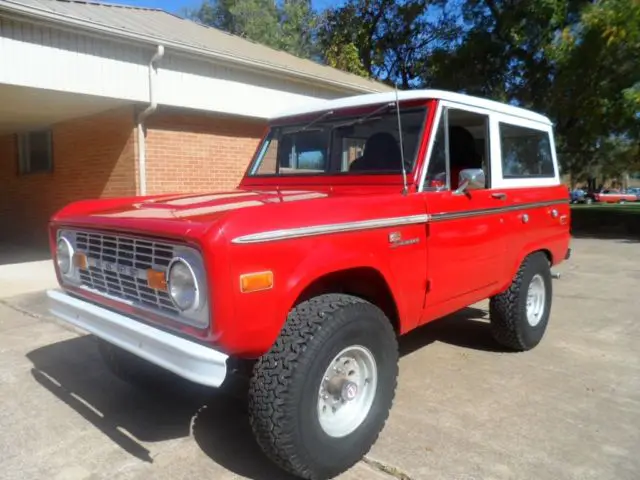 | Good conndition Bronco with 302 V 8 engine and 3 speed manual transmission. Runs and drives great, new two-tone paint. No rust. Removable metal convertible top. | |