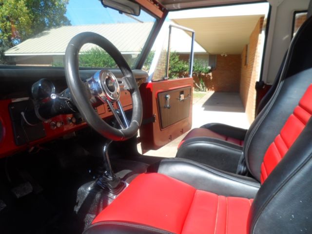 | New bucket seats, Hurst floor shift. Non working radio. 4 X 4 with inside floor shifter. New full length floor mat. New door panels. Grant GT steering wheel. Nice dash and tach-o-meter. | |