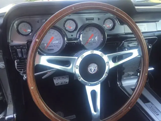 Shelby gascap. Shelby GT500 emblemen. Verlichte Mustang instapdorpels. New Shelby dash met tellers signed by Caroll Shelby.New de luxe console. Alle het chrome werk is nieuw. Alle rubbers zijn nieuw. bullit sport mirrors.