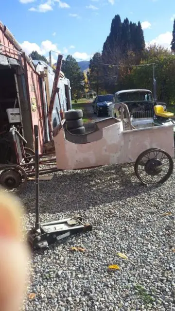this is a hand built body steel and frame,tube. it has a front straight axel and model a rear end which will need total assembly and parts. it has wire wheels, as well. this is a huge project. i was going to build it into a old speedster, but switched to another project.THIS WOULD MAKE A REALLY NEAT RAT ROD
