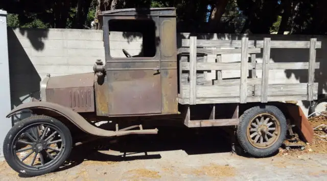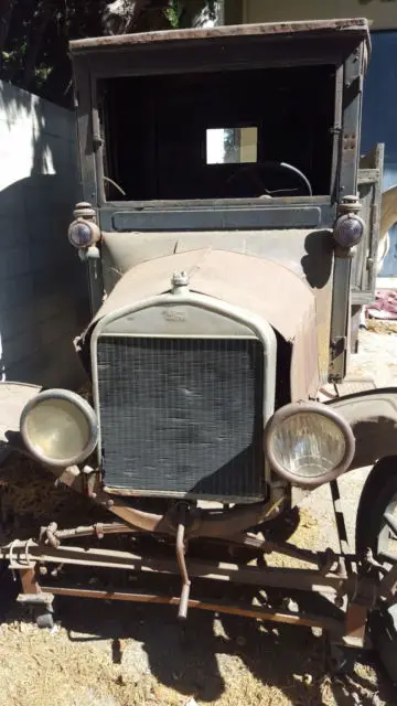 1926 or 1927 Ford Model T Truck. There is no title and I cannot find any identifying numbers for it. The engine was pulled out and the truck is on swivel casters to roll it around. It appears to be mostly complete, but I do not know much about it except that the truck bed and stake sides are not original/built for a stage production. Unknown mileage.
