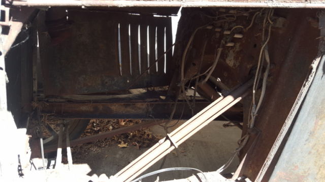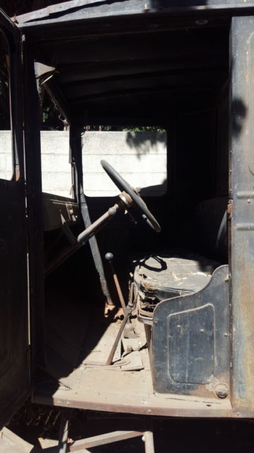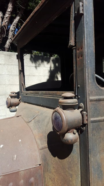 There is no windshield glass or driver door glass, but the frames and window hardware are there. There is no rust-through in the body, but there are some tears in the metalmostly on the fenders along with some fender dents. The seat frame and springs are in good condition, but the fabric is beyond repair. The engine wiring is mostly gone, but the engine turned over by hand when last checked. Also, the hood looks a little too big to fit properly. The kerosene lamps with purple lenses are nice. Seller can assist your transport company in loading, but seller will not arrange or broker freight for buyer. No warranty, no returns.