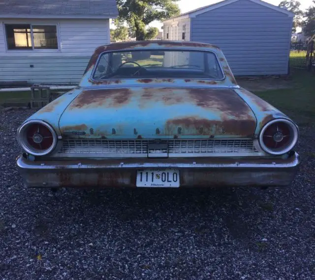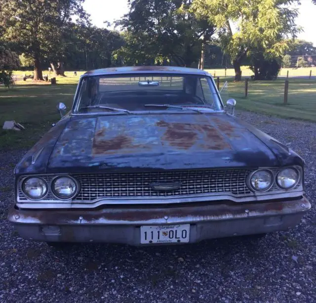 1963 1/2 Ford Galaxie 2 dr hardtop. 289 3 speed on the column.I have owned and driven for almost 9 yrs. Runs strong, smooth ride and is drivable as a beater with some repairs but if restoring needs complete restoration. Brakes work fine but could use adjusting. Body has a few minor dings and rusted thru in a few spots (lower front fenders and lower qrter panel) but has straight body and solid frame with the remaining paint being origional - so it has never been in a accident. Front floorpans are pretty solid. Right rear floorpan has a hole rusted thru and needs replacement.Trunk pan is in fair shape and solid in some areas but completely rusted thru in a few others. Front seat needs upholstering. Rear seat isfrom a different vehicle. (Was in when I purchased) Needs a front windshield, it is badly cracked on pass side. Has chambered dual exhaust so it is louder than a rumble or throaty sound. I have the moulding/trim but one piece has slight bend. Purchased and installed new edelbrock carb, new tires, motor and trans. mounts, heater core, front wheel brake cylinders, belt, hoses, temperature sending switch, and few other parts over theyears and have thereceipts.