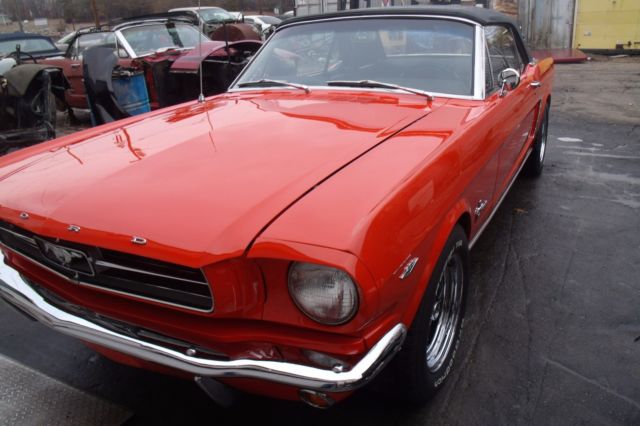 This is a 1964 1/2 Ford Mustang with a 260, 2 Barrel Engine. This vehicle has an Automatic Transmission in it. This car is origanially from California and had NO rust at all!! The vehicle is Poppy Red in color with aBlack new power top.It has Power Steering, New paint, All new chrome, and All new interior. This vehicle Runs and Drives GREAT!!!! It has a Clear Title and is ready to hit the road!!!