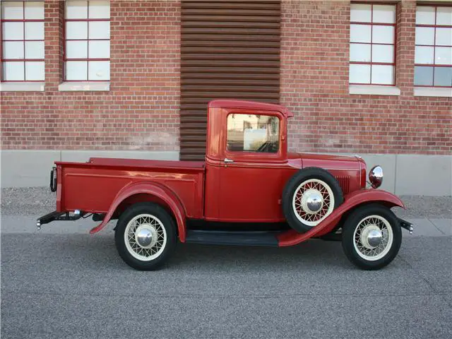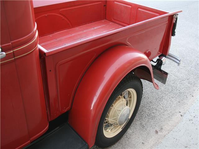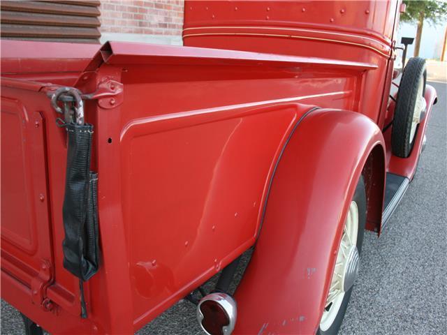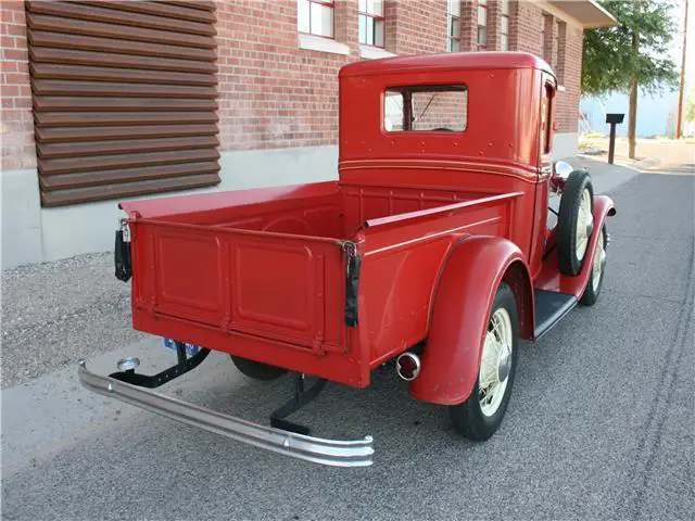 This 1932 Ford model B Pickup is the cleanest, straightest, and unmolested example I have ever seen. Originally a Southern California truck and obviously never used for hauling as evidenced by its perfect dent free bed with no evidence of repairs or bodywork. Body and fenders are the same with only 2 little spots of rust bubbles on both front bed pockets.(pictures below) Fenders show no hammer marks or weld repairs underneath and have perfect beaded edges. Repainted Red over the original black at some point prior to 1971. There are spots especially in the interior where paint has popped off showing the original black. I believe the body was never off the chassis, but the fenders and bed were removed and reinstalled during the repaint way back when. This truck has a passenger car grille, some have told me it may be original to the truck but I believe that all trucks came with the stamped commercial style grilles. Interior is period 60's and in fine shape for its age. Runs and drives great, I put over 300 miles on her last month driving around town and using it as my sole transportation while on Business/ vacation in California. Engine number matches the frame. Recently a new leak proof water pump was installed. All gauges work except the fuel gauge. Wiper works but does not cycle, you have to pull the knob every time you want it to wipe. If you want the best with amazing Patina here it is, you would be hard pressed to ever find a nicer example.