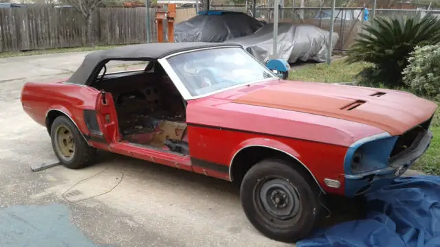 For sale a really clean 1968 Mustang convertible body with clean CA title. Body is in above average condition with only minor work needed under the battery tray and one floor pan that appears to have had a battery left on it. See photos. I have more photos available and can take any you need. This body is very original and does not need much. It comes with front fenders, trunk lid and fender extensions, a hood and front sheet metal and a 68 302 4V long block that is not seized. It also comes with power steering and power disc brakes and an 8 inch rear axle and front and rear seats. The power top is good but it needs a back window. The car is sold as is and shipping is the responsibility of the buyer.