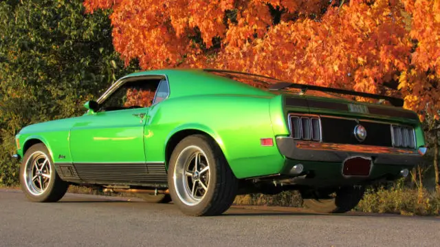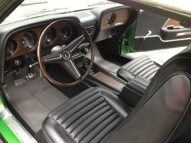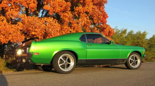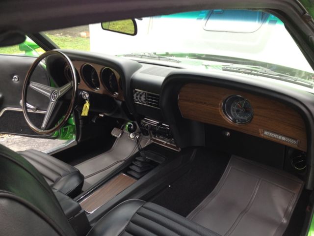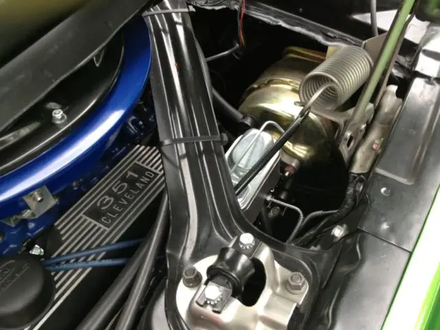 All new original style Mach I interior with C.D. head unit and custom shifter and boot. New windshield and very nice original side and rear glass, original shaker hood with new shaker air cleaner assembly. Built 351 cleveland motor with crane H-272-2 cam and lifters with matching springs and retainers, DIAE-GA-C.J. Big valve and port close chamber heads, port matched and polished with Eldelbrock performer intake .030 pistons, double roller timing set and high volume pump Walpro in-tank electric fuel pump with professional products fuel injection system –