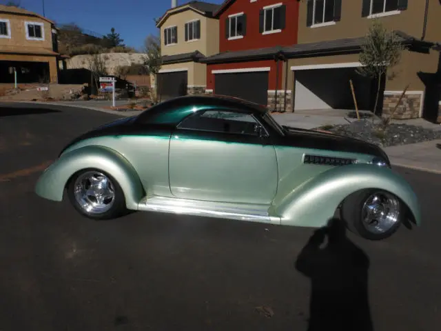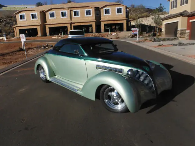 Coast to Coastbodied 1939 ford roadsterwith removable hardtop. This car a complete list ofhigh end options. New boxed and tubular frame with four link rear suspension. Tubular A arms and billet QA1 shock wave -struts on all 4 corners. New chrome compressor and lines. Head lights shaved and moved, Suicide doors. Chrome side vents. Custom exit exhaust. a Fordracing 302 small block with heads,Electronic ignitio, Edelbrock performance intake and carb. Chrome Sanderson headers connected to an over drive automatic transmission. Dakota Digital Gauges, polished vintage air, polished radiator, tilt steering wheel. Remote controlled power windows. am/fm cd player. Stainless steel fuel tank, all riding on custom Foose wheels
