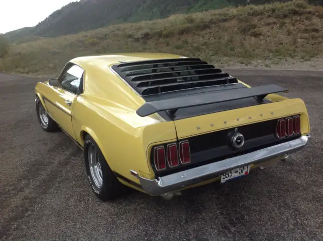 This is a numbers matching Boss 302 Mustang that I purchased in 2010. All original sheet metal other than drivers side rear quarter. Do not know the reason for the replacement. Paint is driver quality at best. It has it's fair share of chips and cracks. Paint is bubbling at the base of both doors. Dash pad is uncracked but shows very subtle bubbling. 8 Track does not work, shocker. Steering wheel has multiple cracks, horn does not work. Gauges all work, but dash lights are dim, several bulbs must be burned out. Has aftermarket Sun tach attached to steering column. Heater core has been bypassed and levers for heater are seized. Trunk springs are shot, piece of 1/2 pvc is currently being utilized to prop up lid. Clutch is a dual friction centerforce that I installed approximately 2000 miles ago. I also replaced water pump and installed new BFG T/A radials 1200 miles age. Engine runs strong but rear main seal leaks. Rear end leaks but comes with a brand new one. Transmission is strong but once a month or so, if parked in first, you can have issue shifting it into reverse. Engaging clutch several times breaks it out of its trance easy enough. Car also comes with a new set of Boss 302 stripes. Rear spoiler has a subtle sag which is typical of the 69. Rear window slats have a few cracks. Chrome overall is good with minor flecking. Car has Koni adjustable shocks, has been lowered in the front 1" by previous owner. If have no idea how he accomplished this. Car also has 70 boss 302 style exhaust tips. Rev limiter is in place but is currently unhooked. Rear end is 3:50 traction lock. Interior is all original and in good shape, even the head liner. One of the pillar trim pieces has a corner broken off of it. If anything else comes to mind, I will add to the listing. Believe mileage to be accurate.