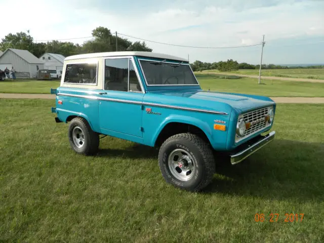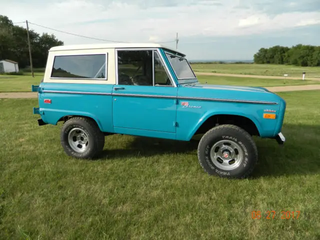 You are bidding on a 1970 Ford Bronco that just underwent a 2 year frame on restoration. This bronco is equipped with a 351 cleveland with 2500 miles on a rebuild. It has an Edelbrock intake and carb and a recent tune-up. The following new parts are under the hood as well: Voltage regulator, fuel pump, gaskets in engine, alternator, water pump, thermostat, battery, shroud, belts and headlights. Not yet installed, but will include a new 2 1/4 dual exhaust with turbo mufflers.