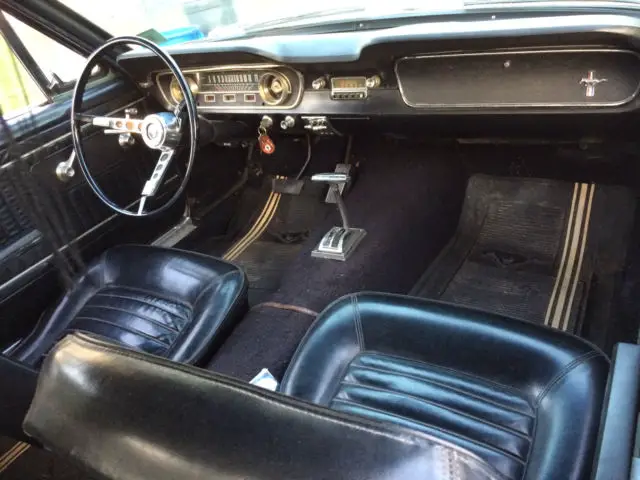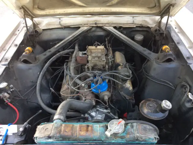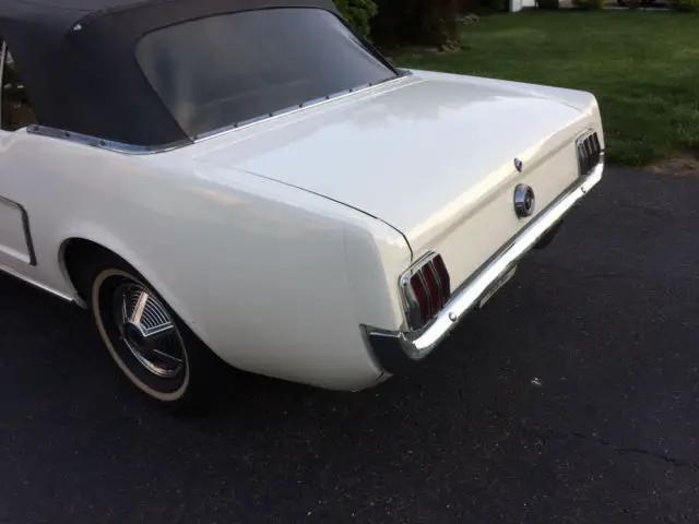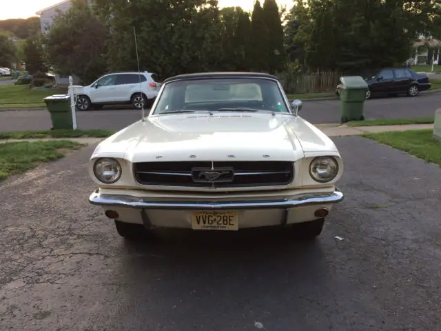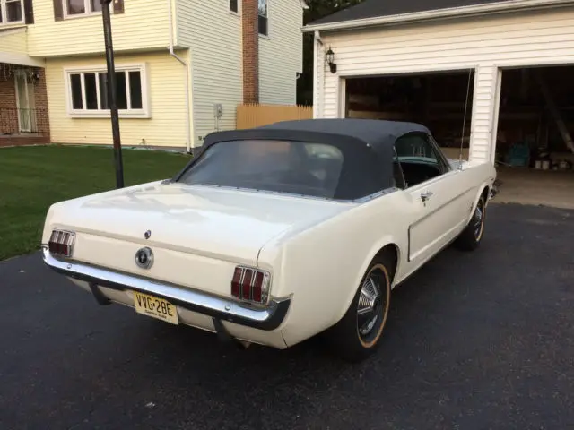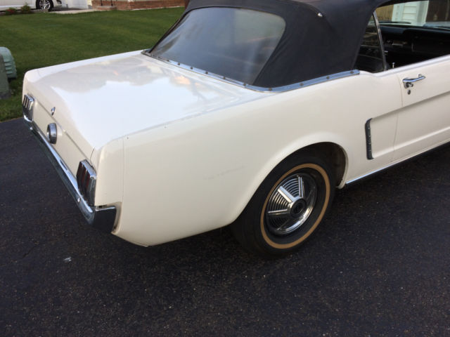 1965 Mustang Convertible. I had a Mustang friend decode the VIN. It was built on September 23, 1964, came with a 289 4v V8 and a C4 automatic trans, and had a rear axle ratio of 3.00:1. Also it was originally painted in Prairie Bronze with a std black interior. It is now white and has a 2 barrel 289. There is a tag on the engine which indicates it is a 1966 engine. I don't know the history and how that 66 engine got in there but it looks like it's been in there for a long time. Maybe it was a warranty replacement or dealer swap or theft. Who knows. Bot the car is all there and looks like it's supposed to look.