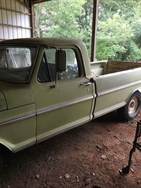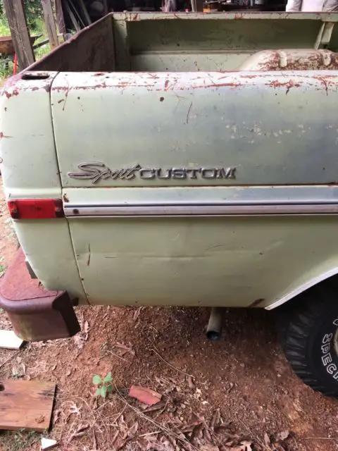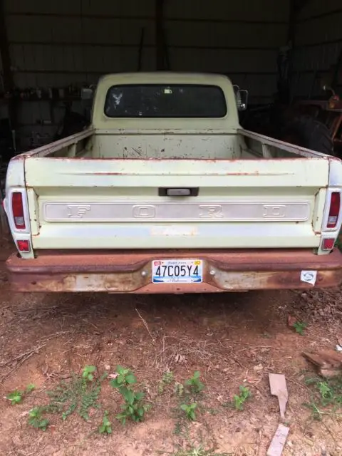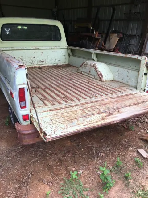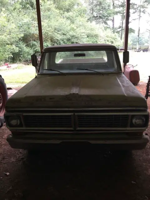 The is a Ford F-100 Sport Custom. It is 2 wheel drive. Has the 6 six engine. Three on the tree manual transmission. My Dad purchased in 1970. Been the family.