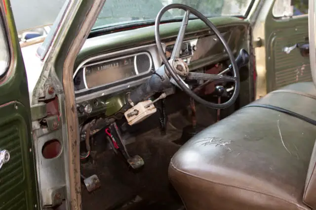 This is a 1969 F350 that has had the original 390 replaced by a Perkins 6.354 diesel. It also has a Spicer aux transmission installed (double under, direct, over). Certainly a unique vehicle to say the least.