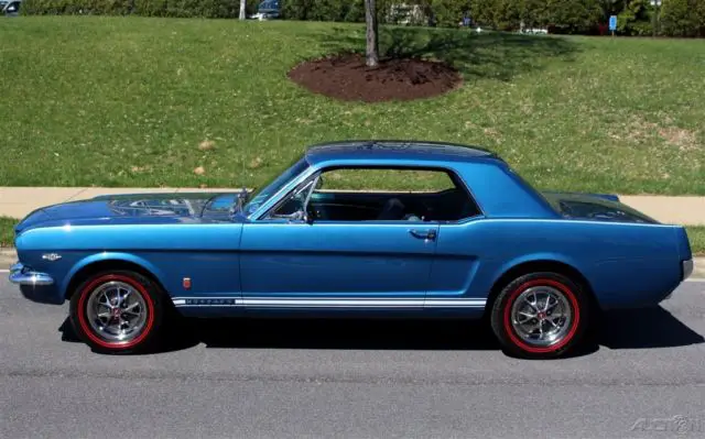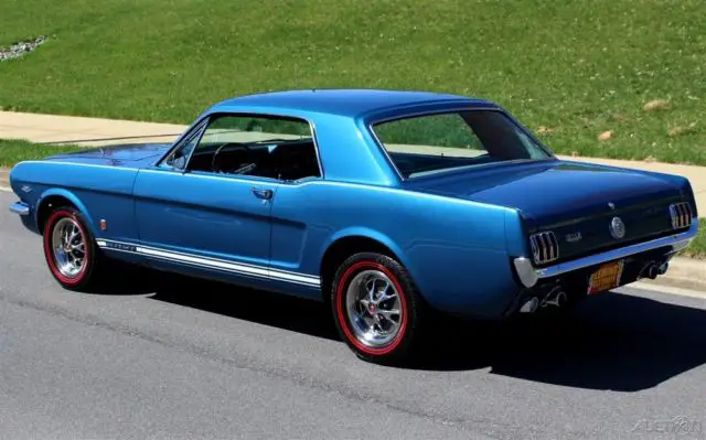 Beautiful restoration of this Ultimate Pony car, the K-Code Mustang GT, Legendary, matching numbers, Ford 289cid Hi-Po V-8 @ 271hp, Matching numbers 4-spd manual transmission, Original, Heavy Duty, Equal-Lok rear differential with 3.50 gears, Mirror finished, dealer special order, Acapulco Blue paint show waxed & detailed, Great looking, correct coded (22) Blue Bucket seats with full custom console, Optional, Rally Pack gauges including 8K RPM tach, 140mph speedo + working clock, Original style woodgrain steering wheel, Original style upgraded AM/FM digital sound, Show detailed engine + trunk compartments, Optional power disc braking system, Dual exhaust w/ trumpet tips + GT valence, K-code registry, original window sticker and sold by Tasca Ford, Show or drive this 66 K-code Mustang