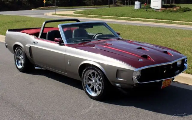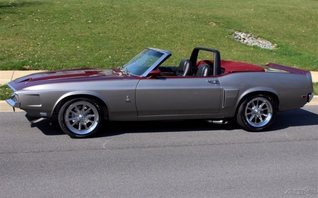 Professional, almost $100K with no expense spared, rotisserie restoration (look under this car!!!) Professionally built Ford aluminum head 351 V-8 w/ the best parts plus reliability@around 500hp ! Upgraded HD Tremec 5-speed close ratio manual transmission with Hurst shifter, Expensive-fully Independent rear differential with posi-traction, Upgraded 4 wheel fully independent and adjustable suspension ( like the Corvette ) Spectacular mirror finish Dark cherry and Sebring Silver metallic paint show waxed and detailed, Correct Shelby GT350 body pkg with the fresh air hood, scoops, spoilers professionally installed and looks great, Brand new color matched Dark Cherry Stayfast canvas convertible top with matching boot, Correct Shelby padded roll bar, Shelby Black bucket seats with Shelby embroidery and full center console, Original Rim-blow Shelby steering wheel, Custom dash with full array of Dakota Digital gauges including 8K RPM tach, Speedo, volts, fuel and oil pressure, Custom Dakota glove box digital clock, Original AM/FM stereo(Hidden digital sound system with Bluetooth-AM/FM/Ipod etc) Optional 4-wheel power disc brakes, Expensive upgraded rack and pinion fast ratio power steering, Upgraded billet aluminum pulleys, Upgraded aluminum radiator, Show ready detailed engine compartment, Polished 17 Torque Thrusts with hi speed radials, Great sounding dual exhaust, Professionally reproduced & restored, 3 folder of receipts, and the top goes down, Show or drive this incredible Pro-touring Shelby GT350 convertible.