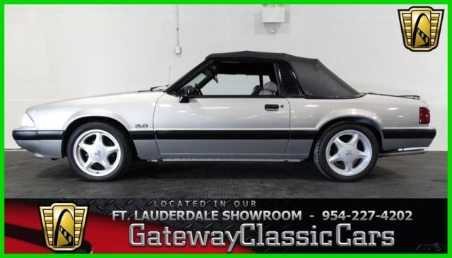 For sale in our Fort Lauderdale showroom is a beautiful 1991 Ford Mustang LX convertible. This Mustang convertible for sale is a sight for sore eyes. Unmolested and un abused this vintage pony is one thats getting harder and harder to come by. Mostly original this Mustang is more like a unicorn. No cut fenders heavily modified engines or trashed interiors here. This beauty is powered by Fords epic 5.0 liter small block V8. Sounding off through dual exhaust this proud pony has a subtle rumble while still demanding the respect from surrounding vehicles. Backing the small block Ford is an automatic transmission. This transmission makes for a car thats easy shifting and has plenty of pep down low when needed but a nice cruising when comfort and efficiency is a must. The power is transferred through an 8.8 Ford rear end which graciously throws it to the pavement through upgraded late model pony wheels and radial tires. The exterior is a vintage shade of silver. With fine metallic that shimmers in the sunlight this Mustang convertible for sale definitely has some flash! This Ford Mustang Fox-body is straight and stunning waiting for anyone to take it out on a nice and sunny day. This 1991 Ford Mustang convertible for sale looks like it was meant for the beach with a gorgeous silver and black paint scheme. The interior is in lovely condition with gray leather sport buckets up front with a leather bench in the back. Theres more than enough room for you and 4 of your closest friends or family members if theyre lucky! Sitting in this Mustang will throw you back in the 90s bumpin that ICE ICE BABY. Options on this 91 Ford Mustang convertible include: A/C AM/FM radio automatic convertible top cruise control power brakes power steering power windows seat belts driver air bag leather interior and aluminum/alloy wheels wrapped in radial tires. Nows your chance to own a car thats quickly rising in value and in the ranks of Ford lovers and collectors alike! Owning this sexy fox body Mustang convertible for sale is as simple as one phone call. To see more HD pictures and video please visit GatewayClassicCars.com. For more information please call the Fort Lauderdale showroom at 954-227-4202 or e-mail us at FortLauderdale@GatewayClassicCars.com.