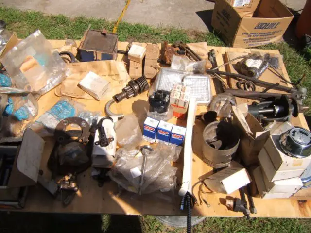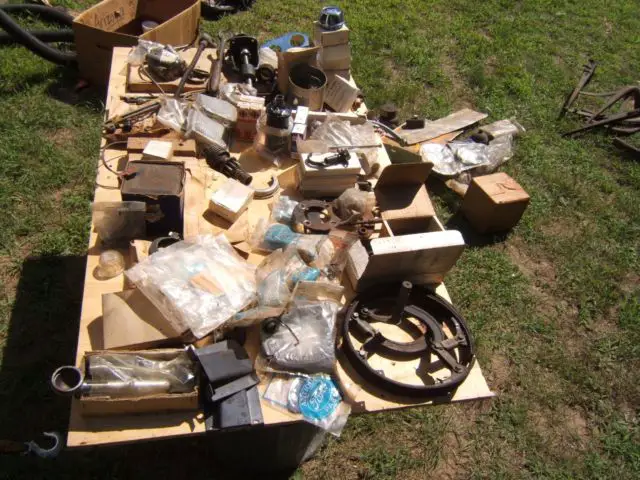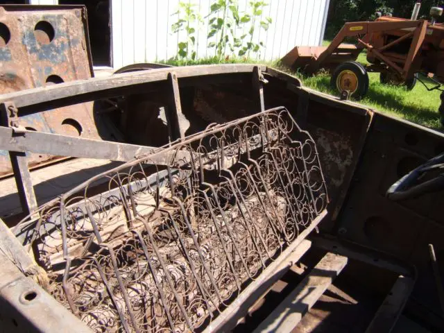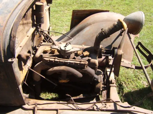 The running gear and car frame are very good and the engine turns easily with the fan blade.All body parts, fenders and splash panels are very solid with no cracks or dents. The floor panels are rusty and will need to be replaced. The car seat springs are usable. There are no Rumble Seat springs or seats. Also, the top hood panel is missing. There are, however, new side panels for the hood as shown in the photos. All parts shown in the photos will go with the sale. Included in the parts on the plywood table are rings, valves and valve springs for an engine, full ignition replacement parts, new clutch plate, kingpins and spring shackles, rods from the firewall to the radiator, numerous gasket sets, new brake parts, new water pump, new set of hood latches, new gas line and starter switch and new chrome dash panel, rumble seat handle, hub caps, enclosures for the light and horn wires and Rumble Seat square steps. Other parts are shown in the photos. Car is titled with permanent Pioneer license in Minnesota.
