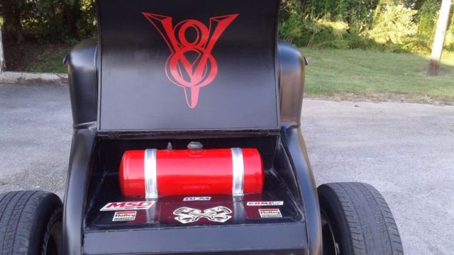 It has Ford Mustang rear drum brakes, not sure of gear ratio. It has .30 over 350 small block Chevy motor with a Weind tunnel ram with 450 Holley carbs and aluminum pulleys. The transmission is a 400 Turbo with a B & M shifter kit. Paint is satin black. It has functioning brake lights and turn signals. It has a Lokar shifter. The top has been chopped 4" and it also has a 10 gallon fuel tank and coil over rear shocks. It needs speedometer cable and some tuning on carbs. It is a swet little car and fun to drive, gets lots of attention. If you don't see it you will sure hear it. This is not a show car but a nice little rat. This is a new build with about 25-30 miles on it, played with it awhile it's time for a new toy. I have a clear 1931 Ford Model A Kentukcy title. If you have any questions just ask, if you want to talk email for my phone , buyer is responsible for pick up or shipping. If you do not have the money please do not bid. There is NO RESERVE! Sorry for the inconvenience to some watchers but I have relisted due to problems with the listing.