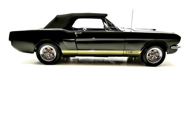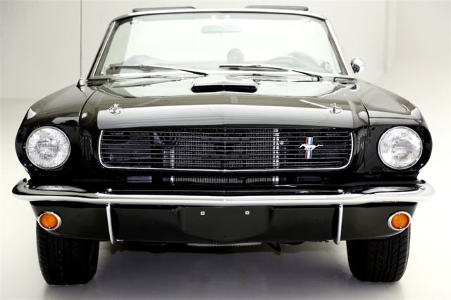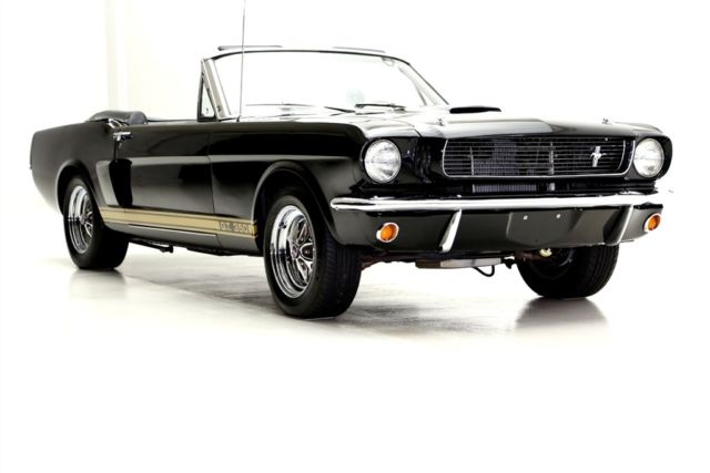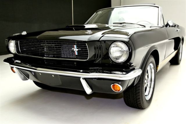 Triple Black 1966 Ford Mustang convertible, extensive restoration, loaded with performance and Shelby options, built 302 cubic inch engine, automatic, new black canvas top, power steering, disc brakes. Awesome looking car with gold GT350 stripes. Gorgeous black stallion of a Mustang convertible wrapped in new jet black mirror finish paint, gold Shelby GT 350 stripes and hood scoop, topped off with a high $ new black canvas power top. New chrome all the way around including, bumpers, grille, tail lights, back up lights, Shelby GT gas cap and Shelby emblems. The trunk is also nicely restored with mat and spare. The inside is equally as nice with new interior including seat covers, carpet, door panels, like new gauges and instrumentation, a Shelby steering wheel and topped off with a Shelby Tachometer and gauges for more accurate monitoring of the drivability functions. In the glove box is a very nice newer stereo system. Under the Shelby Style hood is beautifully detailed engine compartment that embellishes a performance built 302 with 289 hipo badging and Shelby Cobra valve covers and Shelby oil pan, Power Steering and Disc brakes. This pretty black pony is rolling on a new set of chrome Mustang styled wheels with Shelby center caps and new performance rated tires.
