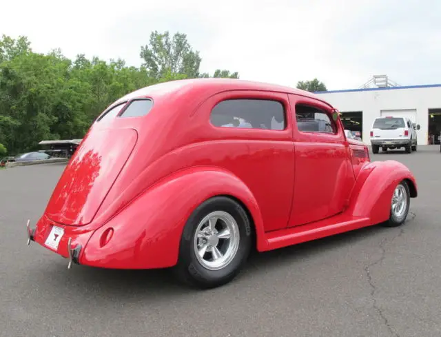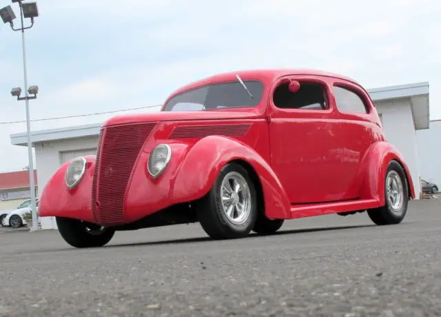 OLD FORGE Motorcars is proud to present this 1937 Ford Tudor Slantback street rod. This is probably the finest '37 Ford Slantback street rod on the planet! All steel, chopped top w/perfect metal work, show quality PPG Empire Red with the nicest gray tweed interior you will ever see! Perfect stance, perfect sound, drive this one directly from here to the Street Rod Nationals and tell them you came for the big trophy!