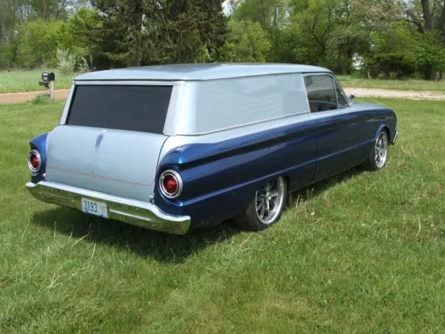 For sale is a professional built custom 1963 Ford Falcon Sedan Delivery with only 300 miles since undergoing a seven year rotisserie custom restoration.The car has way to much to list but i will cover the big things. Everything on this car has been rebuilt,replaced or restored from top to bottom and front to rear nothing was left untouched.It has new paint new interior complete drive train has been rebuilt including engine,transmission and rear end.Body was taken down to bare metal and any damage or rust repair was done with metal not bondo then complete car was powder coated and then painted.Motor is a fuel injected roller block 5.0 litre HO.Transmission is a Ford AOD Rear end is a modern 8.8 with 3.73 positraction and 31 spline axles and disk brakes.It has rack and pinion power steering and dual master cylinder power from disk brakes.It has four wheel disk brakes with drilled and slotted rotors.It has full length sub frame connectors it has under hood bracing that ties the shock towers,firewall,and fenders together and a custom roll bar inside the car.It has 17inch wheels and tires that are brand new. It has a complete custom interior that is also brand new.So you kind of get the picture that car has everything new is very well built and is ready to be driven.I have a clear Michigan title in my name shipping and pick up is the responsibility of the buyer but i will help where i can.I will require $500.00 non refundable deposit through paypal within 24 hours and the balance to be paid within 7 days no exceptions.Please do not waste my time and yours if you can not afford to buy the car.I can keep the car for 30 days while the buyer arranges shipping after that there will be a $20.00 a day storage charge.Car is sold as is where is with no guarantee or warranty.Car will not leave my garage until full payment is made and the money clears my bank no exceptions.