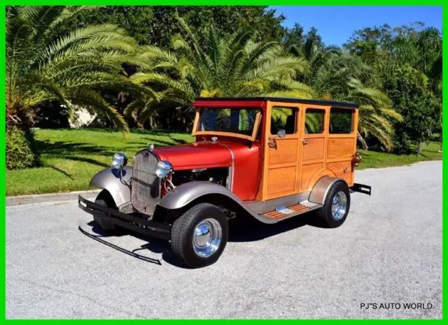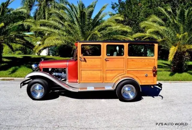 1930 Ford Model A Custom Woody Street Rod For Sale. 307 cubic inch V8 engine, Edelbrock carburetor and intake manifold, chrome engine dress up kit, HEI ignition dual exhaust, TH350 automatic transmission, rack and pinion power steering, custom frame, hairpin front suspension with power disc brakes, 4 bar rear suspension with coil over shock, 14" chrome Smoothie II wheels with BF Goodrich Touring T/A tires, two tone paint, steel cowl and hood, custom built wood cab, vinyl roof cover, power windows, custom cloth bucket seat interior, rear bench seat, wood grain steering wheel, Dolphin gauges, 12 volt electrical system with modern style fuse block, AM/FM/CD radio mounted in a custom overhead console. It's an adventure every time you get behind the wheel of this Model A custom woody!!! Fun Facts -As a variant of body-on-frame construction, the woodie as a utility vehicle or station wagon originated from the early practice of manufacturing the passenger compartment portion of a vehicle in hardwood. Woodies were popular in the United States and were produced as variants of sedans and convertibles as well as station wagons, from basic to luxury. They were typically manufactured as third-party conversions of regular vehicles"”some by large, reputable coachbuilding firms and others by local carpenters and craftsmen for individual customers. They could be austere vehicles, with side curtains in lieu of roll-up windows (e.g., the 1932 Ford)"”and sold in limited numbers (e.g., Ford sold 1654 woodie wagons). Eventually, bodies constructed entirely in steel supplanted wood construction"”for reasons of strength, cost, safety, and durability. -The Ford Model A was the second huge success for the Ford Motor Company, after its predecessor, the Model T. First produced on October 20, 1927, but not sold until December 2, it replaced the venerable Model T, which had been produced for 18 years. Model A production ended in March, 1932, after 4,858,644 had been made in all body styles.