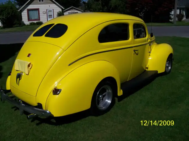 For sale is a 1940 ford 2dr sedan, it has 327 chevy engine, turbo 350 trans, mustangII front suspension and power steering. This car also has the chev 10 bolt rear end with the good highway gears. The car has white face V.D.O. gauges in a billet dash panel, updated electric wipers, and a nice stereo. The interior is very nice, comfortable and clean, the trunk is upholstered too. This car was painted with Glassurit paint, the same paint used to paint Porsches, the paint is very good. The trim and stainless on this car is excellent, the bumpers could stand to be rechromed or replaced, they are straight and very presentable. This car never was a rust bucket, it has all of its original sheetmetal. If you are looking for a very nice driver, This is it.