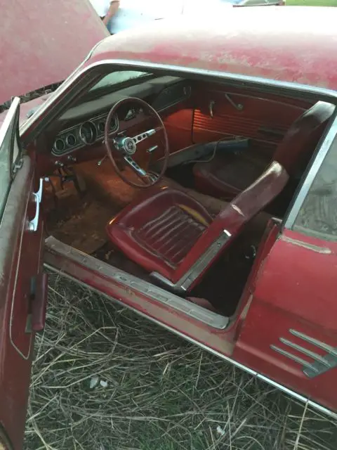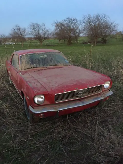 1966 Ford Mustang 289 2bbl Coupe Automatic. Fires up and runs good. Red is not the original color, per the VIN its supposed to be Wimbledon White. Somebody prior to me owning painted it red.I recently got the car running after having it stored in a barn for several years. Plugs, Wires, distributer cap, roter are in new condition. We've timed it at 6B TDC. Its got a new battery and thermostat (160 degree)/housing just put in. I have a new Carburetor kit with it and just replaced the ignition switch and master cylinder. Brakes work great. Oil pressure gauge works, but the other gauges need looked at, might be voltage regulator.It does have rust and needs metal work as you can see from the pictures, but will make a fantastic project.I originally wanted to restore it myself, but I just have too many other things on my plate at the moment. Hate to see it go.