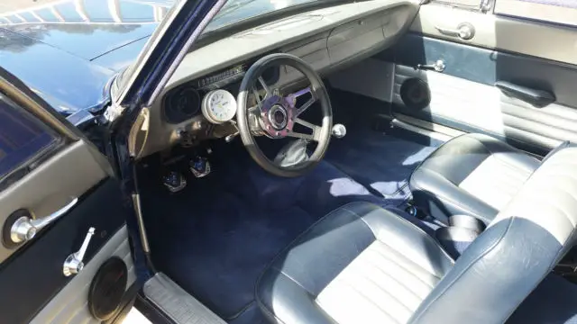 This cool Falcon represents a ton of performance in a reasonably-sized package, all at a very attractive price. Call today!bucket seat interior remains 100% business-oriented without losing its sense of style, New seat covers front and back have a great late-60s look and the compact interior is actually quite comfortable. The instrument panel is a neat-looking symmetrical housing with a wide speedometer in the center and heater controls on the right (note that the heater core is bypassed but the fan works). You can really tell how focused on performance these guys were when they were putting this car together, as even the original AM radio is still in place. The carpets are probably a few years old and show some light fading, but they're in good shape and I wouldn't worry about it. Auxiliary gauges under the dash monitor oil pressure, temperature, and voltage and that shifter is linked to a C4 3-speed automatic transmission. No power-robbing options, no weight-adding accessories, just a clean, no-nonsense interior that's ready to rumble.