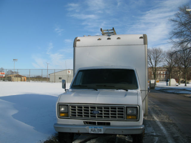 This is a 1987 ford econoline cut a way with a 7.5ltr v-8 engine and a 14' cargo box, 8'high, 7' wide 14' long with rollup door. The truck is in good condition with the exception of floor mats, a heater core and small dings/scratches on one side of the box. and missing floormats. The tires ((6) +spare are in excellent condition. It has a new battery. The truck has +- 200,000 miles on it but runs smoothly except is a little hard to start during the winter months. It is a one owner vehicle purchased when new.