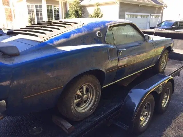 Barn Find 1969 Mach1 for sale. See attached marti report, car was originally Lime GOLD. Car has been sitting in a barn since the late 1990's. With the exception of the wheels and a few other minor items, car is 95+ percent there but it is in need of a total restoration. Torque boxes, quarters, floors, around the rear window, etc. all need material work or replacement. Motor currently in the car is a 351W which runs but is not the original motor. Trans is installed,drive shaft is out of car (but comes with it).