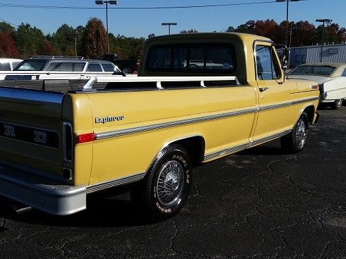Offered for sale is this Rare Original Garage Find. This is an Original One Owner 1972 Ford F100 Model F103 Explorer. We believe everything on this truck to be Original. From the Original Title, Original Paint and Original Excellent interior. It looks yellow in the pictures but it is called (LT. Goldenrod). More of a Mustard color in person. She shows amazing garage kept condition. This is a local truck bought new at Fairway Ford here in Greenville, SC. Original Documentation comes with the truck. I have looked all over this truck and have yet to find any rust. That being said it is a 1972. There is a small ding in the molding on the passenger side rear quarter. Also on the same side there is a small crease on the back of that quarter. You should be able to see both in the pictures. This could be a collector quality find.