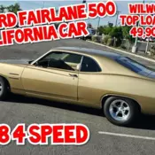 Up for sale here is my 65 Fairlane. 2 door sedan. It has been in California its whole life. Super solid floors rockers fenders trunk pan etc. I will gladly show you pics of any area you are concerned with. E-bay lets me put 12 pics on so i put the important ones so you get the idea. Clear California title. I have had the car for about 10 years. I rebuilt the complete front end. All brakes are also near new. No battery. It needs the gas tank installed. I may have this back in the car before it sells. I never bought the front shocks. It needs a new ignition lock. The old one fell apart. I do have the nice original air cleaner assemble. Motor runs smooth but I see the accelerator pump is dripping. I will also try and install a new one. Very easy. It will have the spare on the drivers front, the mag is leaking. Interior is very presentable. One door panel got caught opening the door. Dash is super nice. Cosmetically I backed into the grill so it needs straightening. Windshield had a crack. I think I can have a new one installed for about $200. Very little body work needed. A tree fell on it and it has a couple of small dents. The headliner is still decent so I didn't want to pull it down to pop the 2 dents out. I can store this for 30 days after the auction is over for free. $50 a month after that if you need me to keep it. $500 deposit within 48 hours of auction close. Cash or wire transfer only. No Pay Pal on balance. I can assist with transport. I have had cars shipped from $600 to $1100 cross country. I can do any of the minor work, call and we can make a plan if you want it. I will help all i can. Thanks Dean land line till 9pm Pacific time or my cell 951-965-3774
