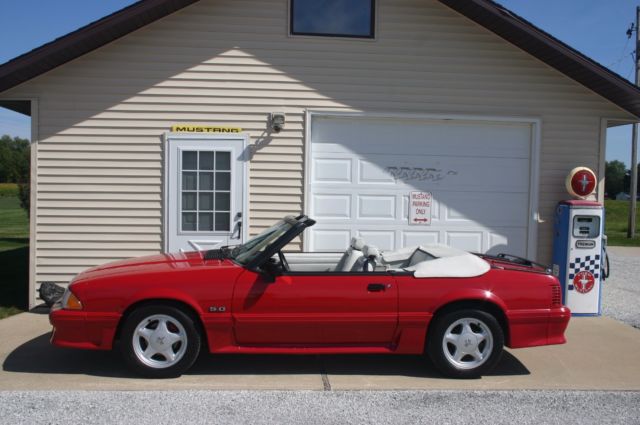 A beautiful car that is fun, fast and very sharp….a real head turner! I purchased this Mustang last September with my son who had been wanting a Fox Body convertible. It is basically a TWO OWNER, garaged, excellent condition car! After buying the car, I went completely thru it so there would be no issues for my son who lives 200 miles away. EVERYTHING works and is good to go. I even put factory child seat anchor mounts in the trunk for his kids. This beautiful Mustang needs NOTHING!! It is ready to drive or show. I am selling it because two months ago a 1988 Blue/Silver Mustang Convertible that we had tried to buy became available. It was our first color choice so we bought it…I am currently going completely thru it for him. Sooooo, the Red one must go.