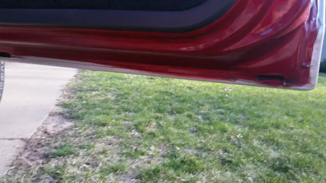 There are three very small spots on the bottom area by the extended cab (See photos). The spots have bubbling under the paint. It does not appear to be in the metal. The spots could be easily fixed for very little cost. I have a guy who does bodywork for my dealership and could have the spots taken care of prior to sale. I would only charge what the exact cost is and would not mark-up the fees.