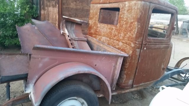 This 34 Ford truck will be a great rat rod project for anyone. The truck consists of a cab, truck bed, mixed fenders, hood, frame, two radiators, 4 spoke wheels, dana 500 rear end, and other random body parts (headlights, etc.). The truck is bare bones and will be a ground up project. Buyer will need to pick up the truck on site, NO shipping unless the buyer pays for shipping and schedules it. Location is within a day's drive to Los Angeles, Las Vegas, and Reno.