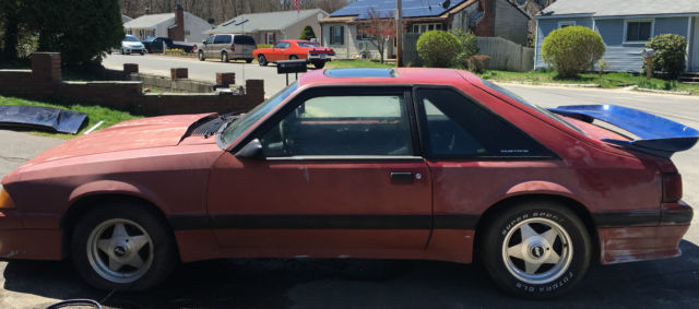ITEM DESCRIPTION & CONDITION: 1988 Mustang comes with lumbar seats, sunroof, ground effects, scooped hood and rear spoiler. Clean interior in good condition with 2 holes only in the drivers lumbar seat. Custom aluminum stick shift. Has special button panel with 4 buttons& 2 special gauges. 1 gauge is large with an attached shift light and the other smaller one is a temperature gauge.