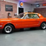 Rare ordered factory "K code" 289 cui HiPo Mustang Coupe.Numbers matching 289 cui / 271 HP "HiPo" engine (VIN stamp match) with 4 bbl Auto-Lite carburetor. 4 speed Manual transmission with original tag (HEH T - Close Ratio Top Loader transmission for HiPo engine pairing). Ford 9" rear end with 3.50:1 gears. Painted factory Poppy Red (code 3) "Orangeâ€. Factory Black vinyl bucket seat interior (code 26). Stock brakes & steering. Flowmaster dual exhaust. Front sway bar. Rally Pac column... gauges. Functional Reverse Lock-out. Factory AM radio (non-op). Dual chrome mirrors. Red oxide undercarriage. 14" Magnum 500 wheels with White-line radial tires.