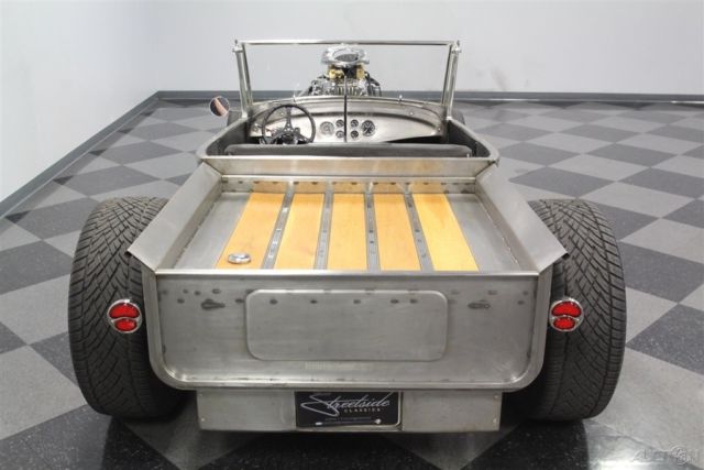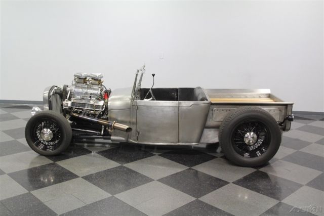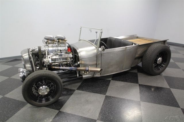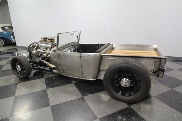 When you see a bare metal hot rod, that's slammed to the ground, and has a blown V8, you know it isn't you grandfather's 1929 Ford Model A Pickup Roadster. But when you also look at how clean, and quality this recent build is, you might soon realize that the truck bed is for hauling home trophies... if they can catch you first! Completed about a year ago, this full custom build was kept in bare metal to show off its industrial toughness. But when you look closely, you'll realize that when a car gets left with nothing to hide, it can only use the best panels. So while this gives off the instant impression that the bad boy arrived, you'll really be taking pride in the workmanship. And the quality is in more than just the bare body. You also see it in the bright grille, real wood truck bed, and the overall craftsmanship it takes to create the ultimate hot rod that has every inch exposed for the world to see. Inside is hot rod simplicity with plenty of flair. The black vinyl seats are tough enough to be out in the elements, but soon you see they borrowed a trick from the Europeans by giving the shared seatback the individual comfort of a lower bucket with good bolstering. You sit behind a customized quick-change Joes Racing steering wheel, and beyond that is a bare metal dash with a full set of SW gauges. The final touch is the extra tall Lokar shifter to make you the Rat Fink of the bunch. An engine this impressive deserves to be out for the whole world to see. There has been a lot of time and money invested in making sure that this whole engine bay shines brighter than the body, so we dare you to find another component that can be polished. But beyond the flash is the substance of a hearty Chevy 350 small block, with a BDS 671 blower on top. If that wasn't enough, you also have the plenty of fuel to mix with the forced induction thanks to the dual Holley four-barrel carburetors. That's some serious power you're creating, and the growl of the straight pipe exhaust will really let everyone know it, too. Getting all that force to the ground is a stout TH350 three-speed automatic and Ford 9-inch rear end. And while this looks like a bare-knuckles hot rod from the outside, be sure to checkout at the undercarriage photos. There you'll see the right upgrades and desirable features like the classic I-beam dropped axle front suspension with Pete & Jakes components, front disc brakes, and an adjustable four link coilover rear. Outrageously powerful, and wicked beyond your wildest dreams â€" you know fresh clean builds like this usually cost double what this one is asking. That's why you know you need to hurry if you want to be the baddest pickup on the streets. Call now!!