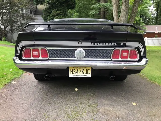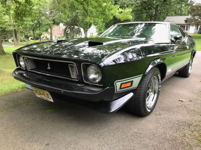Up for sale is this super rare, super fine, all original, black on black, matching numbers 1973 Ford Mustang Mach 1 "Survivor". This car has been stored away for 30 years and as a result is in incredible condition. Car comes equipped with the original 351 Cleveland Motor with a 4 bbl carb. This is a unique Q CODE vehicle and has the ultra rare 4 spd Factory Hurst Shifter (only 548 made that year). Dual exhaust purrs like a lion. Car has only 31,000 original miles!! No fluid leaks anywhere. Car has power brakes (front brakes are disc, rear are drum). Original AM/FM stereo. Rare Rim Blow Horn on original wood grain steering wheel. Brand new 15 x 7 Magnum 500 wheels with Mustang caps. Brand new 15" Cooper Cobra Radial G/T Tires makes this Mustang handle and float down the road like a dream. Full gauge package. Correct Mach 1 stickers for 1973. Interior extremely clean and in great original condition. Another rare option is a backseat pass through - panel opens up in the trunk that gives you full access to the interior of the car (see pics). No rust. Recent improvements include all new drive belts, new battery, new power steering pump, all new filters, new fuel lines, new factory gas tank, shocks, new wiper motor.