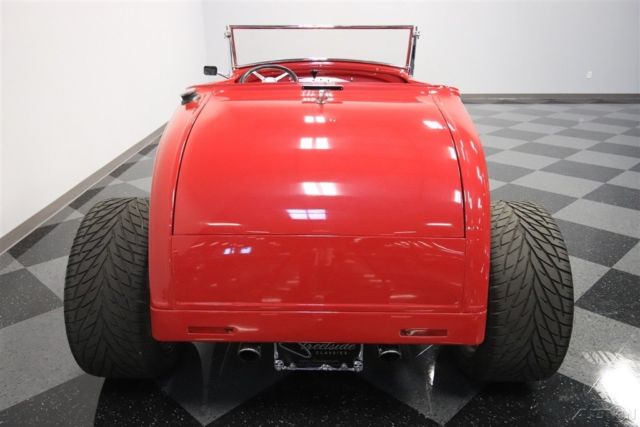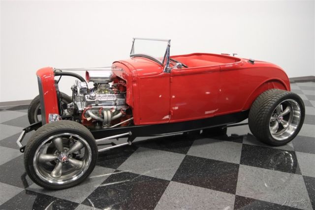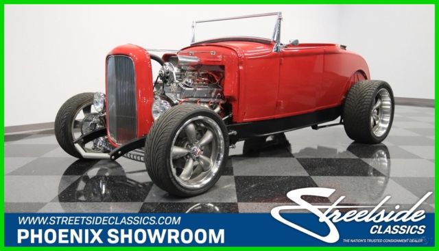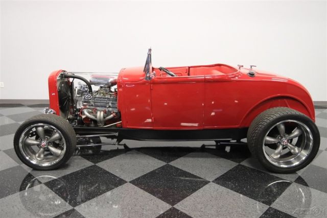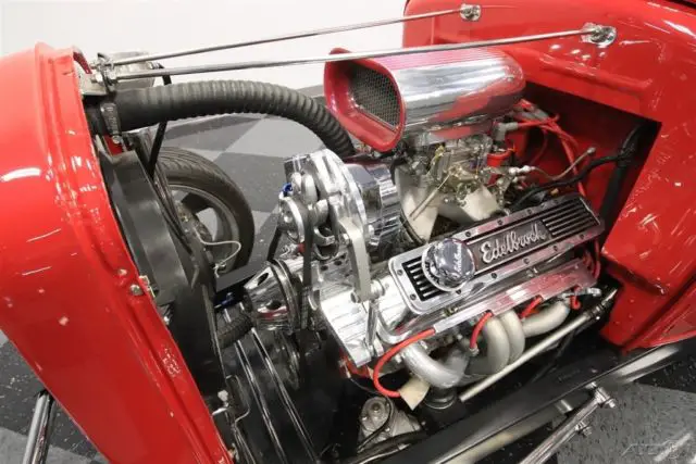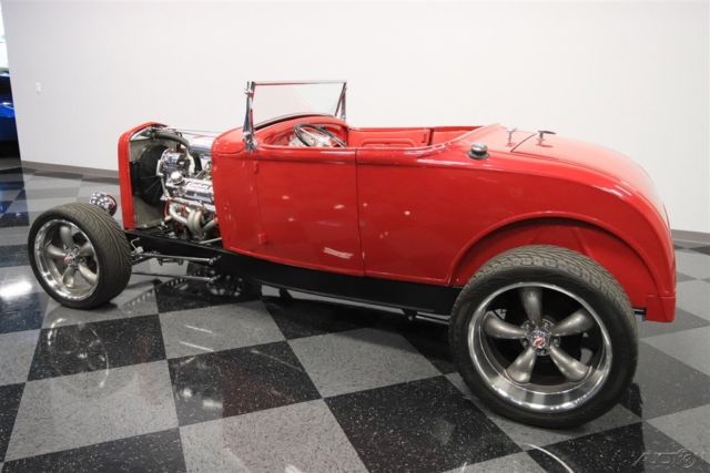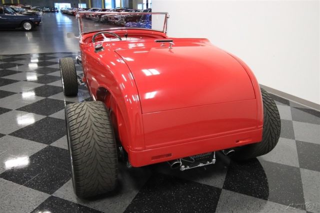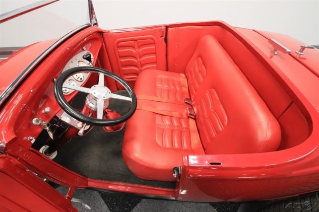 We know you're checking out this 1930 Ford Highboy roadster because it looks like it could be that perfect one where a bold street machine has all the right upgrades. After all, a powerful V8, terrific paint, performance tires, and an all-around quality build on this steel body is what makes this icon irresistible. One look and you can instantly tell the body, construction, and especially the paint are all expertly finished. It's always great to see a well-done steel-bodied icon, and this Highboy really excites with the choices that were made during its creation. They made sure that nothing got in the way of the classic profile - not even door handles. The Red Pearl has a deep modern shine that radiates whenever the sun finds this classic roadster silhouette. And speaking of shine, the details really stand out against this paint. You see it in the waterfall '32 grille, headlight surrounds, one-piece windshield frame, and even the front suspension is on display. And a great modern upgrade are those Coys five-spoke alloys that are staggered 18/20 inches front/rear. It really helps emphasize the wide rubber in the back where all the power meets the road. The red continues inside, because after all, they really get to see the whole car whenever you cruise it. More than just nicely coordinated, this red interior looks terrific with a custom bench seat that has individual racing-style inserts. And that pattern is even repeated on the doors for a very thoughtful total presentation. You can easily get comfortable thanks to a grippy wheel mounted on a Flaming River tilt column. Plus, there are bright inserts on the steering wheel, pedals, tall gearstick, and even surrounding the full VDO gauge panel. An engine this nice deserves to be on display for the whole world to see. You have a ton of polished components that look great in this very tidy and fresh setup. And they really paid attention to detail. You see it in the visual pieces like the air grabber with the details painted to match the exterior. You also see the thoughtfulness in the component quality, like the aluminum radiator w/electric fan. More than just look good, this was built for power, too. It's a 327 cubic-inch V8 that's been enhanced with features like an Edelbrock four-barrel carburetor, aluminum hi-rise intake, MSD Blaster coil, and tight-tuck headers that feed the rumbling dual exhaust. The undercarriage photos show you how fresh every inch of this build is. Plus, they give you a better view of the fully chromed four-link drop axle front end - a piece sure to impress everyone. And in the rear, it's more chrome on the four-link with adjustable coilovers - exactly what you want on a hot rod like this. But as much as this might look like a pure performance machine, the front disc brakes and four-speed automatic transmission w/overdrive ensure it also has all the makings for a nice cruiser. This is a fantastic presentation no matter if you spot if from across a field or are standing one-inch away. It's the kind of '30 Ford you'd build for yourself, except only its already done and ready to go today. So don't miss out on this deal, call today!