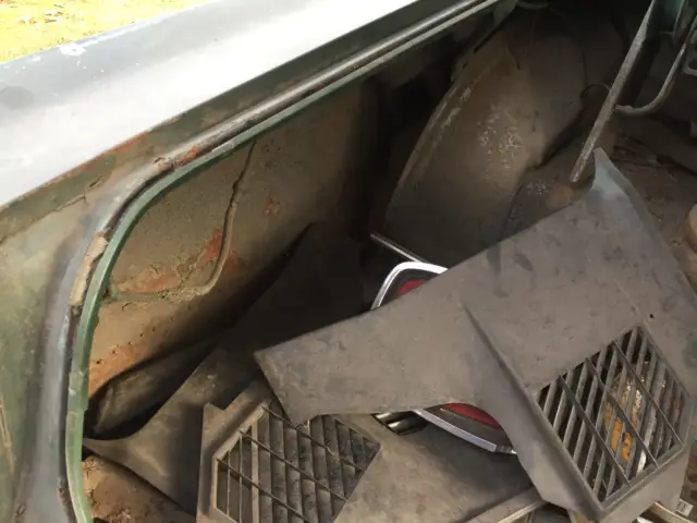 car fine. The body has had a few patches in the past on the quarters and also the floors have had very amateur patches but they have held up .The door bottoms are solid and the trunk lid and trunk appear solid. The doors open and close well.