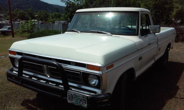 1976 Ford F-250 two wheel drive. Enginehas low mileage onrebuilt390 four barrel with automatic transmission. This truck was owned by a elderly man. It is very straight all over including the inside of the bed and rust free. Dash pad has no cracks, headliner is very nice, carpet needs cleaned, door panels are very good. The hood and top rails on the bed have had the typical old guy repaint but look to have never been damaged. Dual tanks, tow package, tow brake, andnew edlebrock carburetor. Very nice truck with no reserve.