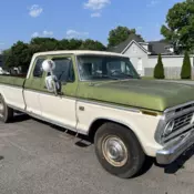 This truck is complete minus the compressor, radio, and one badge on the bed. It originally came with the 360ci motor, but somewhere along the way was upgraded to the 460ci motor. The motor sounds strong and may have been modified (based on the lope), but not sure. The transmission goes into drive and reverse with no problems, and the brakes and power steering work perfectly fine. I don't know a lot about the history of the truck and have only done a few things on it to get it in running condition. At this point, I have replaced the fuel pump, adjusted the timing and carburetor, and replaced the center driveshaft carrier bearing. There areminor dings here and there on the trim and a dent you can see on theend of the driver'sdoor by the latch. It has a very short exhaust at this point, a power steering pump leak, the steering shaft dampener is shot, the radiator has a small leak, and I'm sure there are vacuum hoses that need replacing or rerouting. The last time I started it up it ran great until it got fully warmed up, then it wouldn't stay running without giving it gas. It fires up on the first turn every time and I'm sure it is just a matter of vacuum and adjustments.