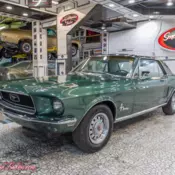 Mustang fans, let me be the first to assure you that any resemblance between this 1968 Ford Mustang fastback and the famous one used by Steve McQueen in "Bullitt" is purely intentional. Complete with a 390 cubic inch V8, a 4-speed, and those famous Torque Thrust wheels, this car has the look that everyone loves. This Mustang is serious. It's nasty, it's fast, and it pulls no punches in any regard. It's beautiful in every way that... a car can be and the sheetmetal looks stretched over the frame so tightly that you know there's not an ounce of fat on it anywhere. And that's a good thing because dark paint like the code R Highland Green keeps no secrets and the sheetmetal on this car is super straight and super sharp (by the way, Highland Green is this car's original color, a nice bonus!). Doors fit right, the hood sits flush, and the deck lid blends seamlessly into the fastback profile to give it a beautiful, uninterrupted curve. It's got some bright trim, just enough to highlight the fastback's most delicious details, but the grille has been properly blacked out and all the emblems removed, just like the movie car. Chrome bumpers sparkle and we love the way the blacked-out tail panel looks, complete with simple GT gas cap. The all-black interior is every bit as wonderfully restored, with crisp, well-detailed seat covers on the buckets, a wood-rimmed steering wheel, and Hurst shifter sticking out of the transmission tunnel. If you can touch it, it's probably new, including the carpets and door panels, and basic black was the original choice so that's what went in during the restoration. The instrument panel and gauges are crisp and brightly rendered, focused on the speedometer and tach with auxiliary gauges above, plus an Auto Meter oil pressure gauge in the center, and that '60s font on their faces has been recently enshrined in late-model Mustangs to provide a tie to the past. Other upgrades include an AM/FM/Bluetooth/iPod radio in the original slot, cold factory A/C with modern hardware, and a fold-down rear seat. The trunk is nicely finished with a reproduction mat and tire cover for the full-sized spare. The engine is a potent 390 cubic inch V8, rebuilt and detailed to a very high standard. The '67 Mustangs were redesigned just so this engine would fit between the shock towers and the performance is definitely worth the effort. With bottomless reserves of torque and instant throttle response from the big 4-barrel carburetor it's almost impossible to resist putting your foot on the floor. Ford Blue paint covers the block and heads, along with chrome valve covers that add a dash of dress-up. Correct details range from stamped hoses to reproduction decals, and it runs superbly. The 4-speed feels robust and that torquey 390 doesn't need anything more than the 3.00 gears out back, so it's a great highway cruiser as well. Long-tube headers, an X-pipe, and Flowmaster mufflers give it a wonderful cackle and the chassis is upgraded with subframe connectors, traction bars, and 4-wheel disc brakes, so it certainly runs like Steve's car and then some. Proper sand cast Torque Thrust wheels with big 215/65/15 Pirelli radials ensure great handling. A lot of Mustangs are more hype than substance, but this incredible fastback allows you to relive a great movie moment as well as own a fantastic Mustang. Call today!