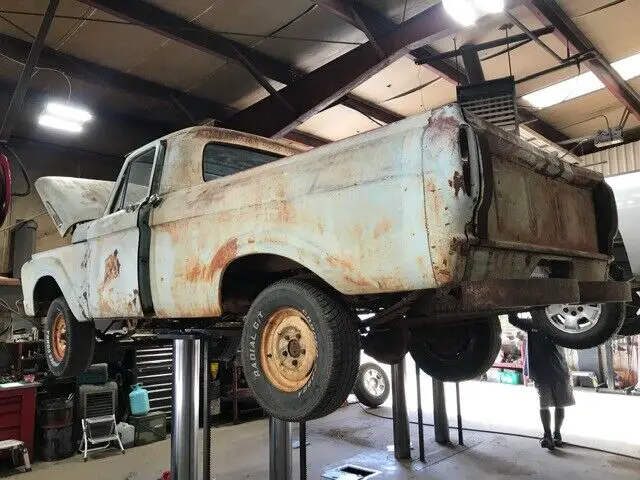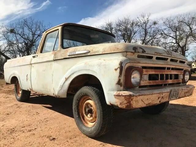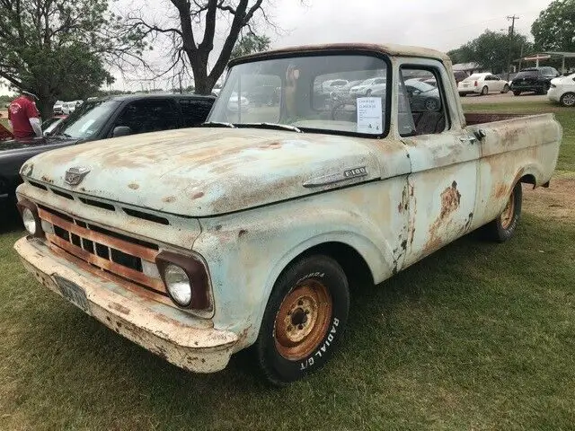 1961 Rare Vintage Shortbed UNIBODY (only made from 61-3) 6 cylinder, manual,ALL original F100 dry West Texas pickup. This truck spent it's whole life in dry West Texas. I purchased it 5 years ago from a guy who collected Unibodies (I have another shortbed and extremely rare long bed).These are very rare and collectable and the patina is off the chart. It's a straight bodied truck with doors aligning and closing as they should as does the hood. The tailgate has a couple dings but opens and closes as well. This truck is uncut and ready for whatever someone needs. It runs and drives and I'm happy to send video of it cycling through all 3 gears on road.It has a starter button instead of keyed ignition. Pretty straight forward with a little rust on the floorboard on the driver's side about 1 inch by 1 inch. Any parts for this truck are re manufactured and available because of their popularity. Happy bidding.