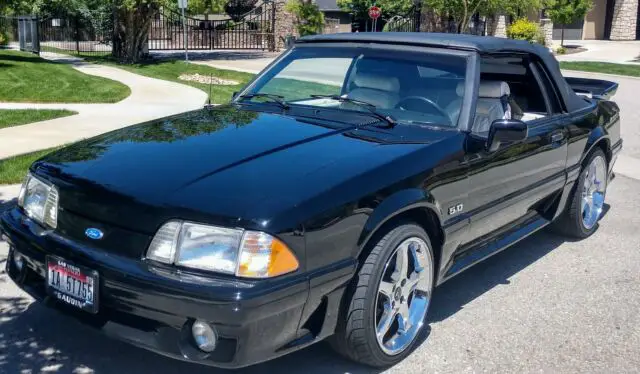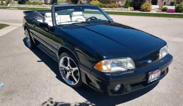 Very, very clean 1990 Mustang GT Convertible, 25th Anniversary Edition. Newer paint, upholstery, cleaninterior. 18" Cobra wheels, new tires, battery, alternator.Replaced Ford transmission. Saleen Wing, front blackout lens covers.Replaced shocks, struts, brakes, camber adjustments, flowmaster exhaust, K&N filter. I installed anew aluminum radiator with dual fans and new aftermarket instrument cluster - 6 gauges. Convertible Boot Cover, Mustang Screw Kit, and Mustang Floor Mats. I purchase the car in September of 2007. I changed thedash gauges after I purchased the car. The mileage shown on theodometer in the attached picture are the miles I drove the car in the last 12 years. I was told when I purchased the car that the mileage was 72K, I have the original ebay listing on the car. That's the story on the mileage. Rust free Idaho/California car.