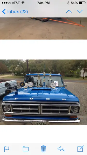 Frame off restoration 7 years ago.1971 Ford F-100 has 4BT Cummins, NV4500 transmissio, Drop beam axles, custom headliner with stereo speakers, Bucket seats with console, spray in bedliner, toolbox, removable stacks, Custom auto sound system with six CD disc changer and USB stick, air-conditioning (VERY COLD), auto meter gauges, gets 25 to 28 miles per gallon, Insures with Hagerty at approximately $400 per year depending on where you live New Cooper cobra tires on American racing wheels.